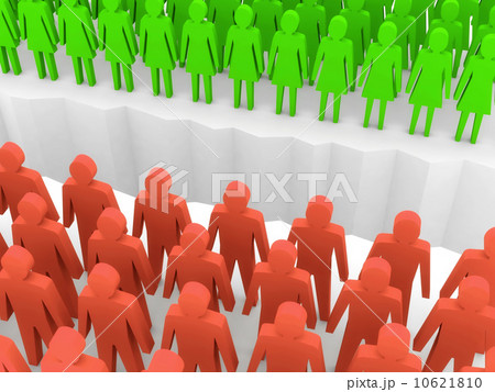Men and women split on sides, separation crack.