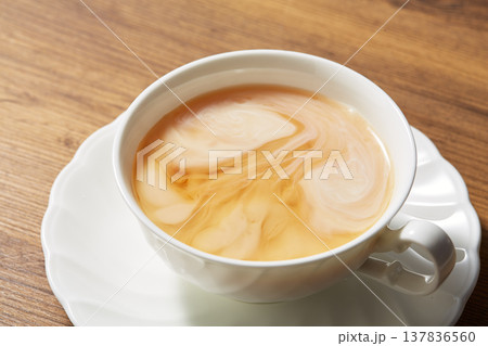 紅茶にミルクを入れる様子