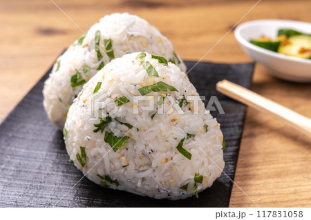紫蘇としらすの混ぜご飯のおにぎり