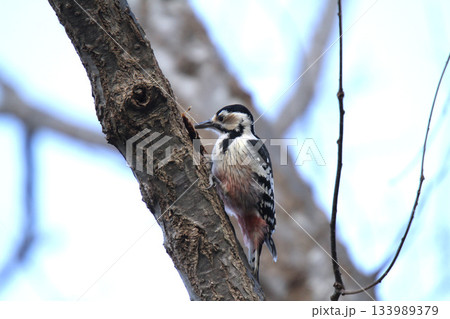エゾアカゲラ アカゲラ ♀ キツツキ 北海道野鳥