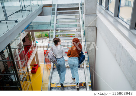 Group of university students walking up stairs, back to school concept.
