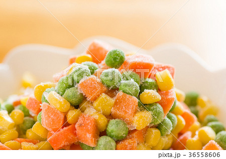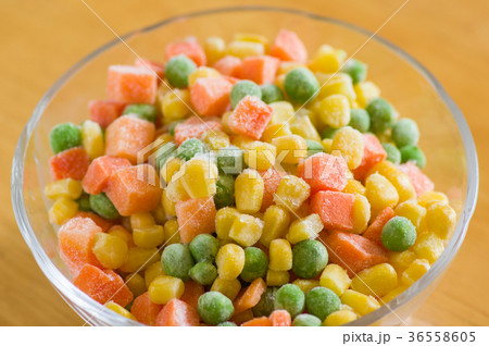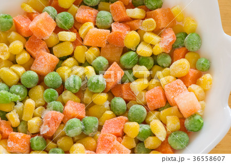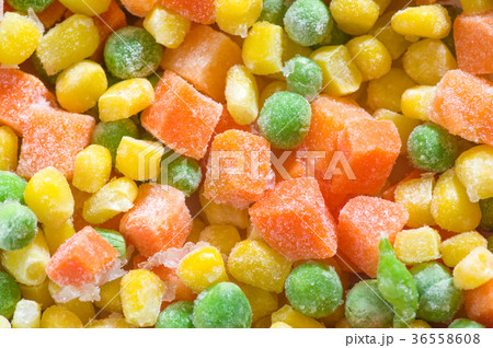冷凍のミックスベジタブルのクローズアップ