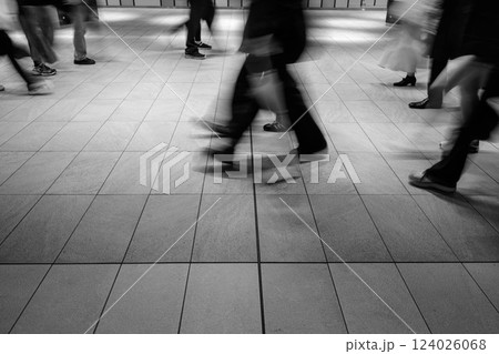 大阪梅田の地下道を歩く人をぶらせて撮影