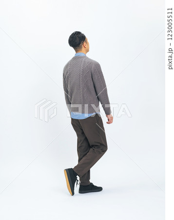 歩くカジュアルウェアのミドル男性の後ろ姿の全身写真