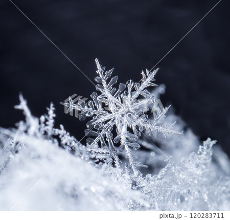 natural snowflakes, photo real snowflakes during a snowfall, under natural conditions at low temperature