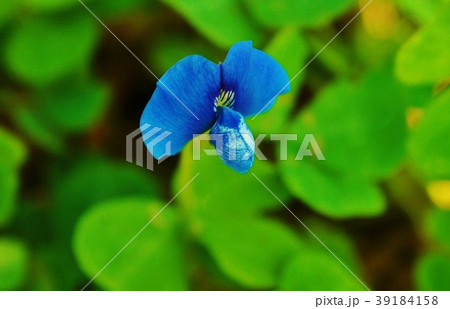 珍しい春の花の背景素材・ブルークローバーの愛らしい花・横位置
