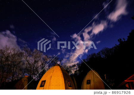 星空夜空とキャンプ場可愛いメルヘンチック背景素材 千葉県君津市清和県民の森ロッジ村