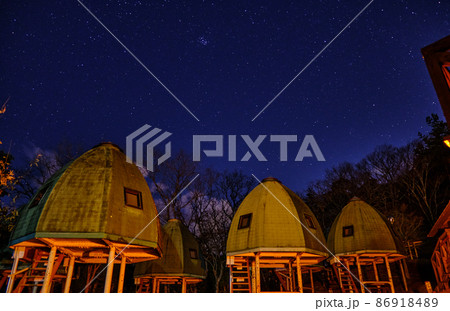 キャンプ場夜星が輝く空背景素材 千葉県君津市清和県民の森ロッジ村