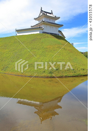 清明台櫓と青空 水面に映える景観 宇都宮城址公園