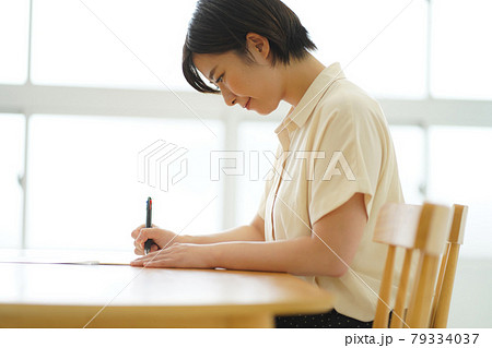 文字を書く女性