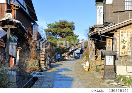 【岐阜県】快晴の馬籠宿の町並み