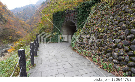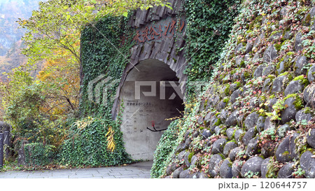 新潟県 清津峡渓谷トンネル入口と黄葉