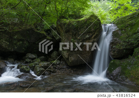 奥入瀬渓流の清流と苔むす岩 新緑に包まれた癒しの風景