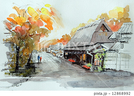 京都の秋 紅葉して嵯峨野・鳥居本のスケッチ