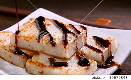蘿蔔糕 菜頭粿 醬汁 Pouring sauce Turnip cake ルオポガオ 大根ケーキ
