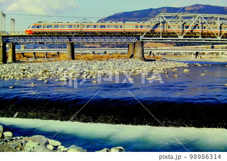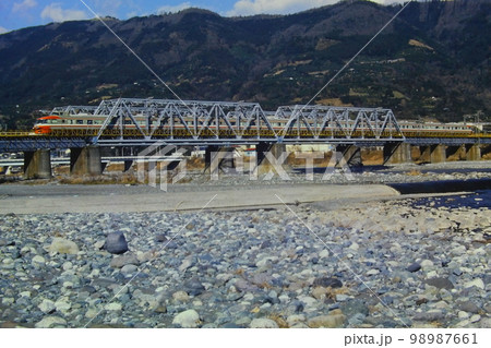 酒匂川を渡る小田急3100形NSE車はこね、新松田→栢山(開成)、1982年1月2日、KR