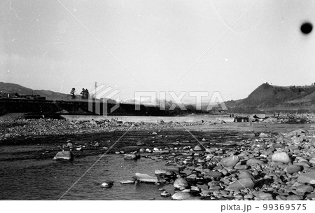 古い写真 昭和30年代 渋川市 利根川に架かる大正橋付近から上流側を見る 沈砂池付近