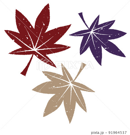 版画風 紅葉の葉 3色