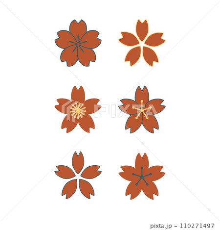 いろいろな桜の花のセットイラスト