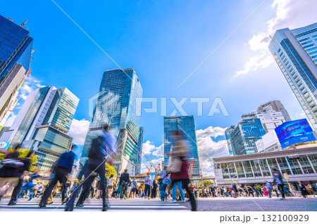 日本の東京都市景観10月3日。インバウンド続く…外国人観光客らで賑わう渋谷スクランブル交差点、新時代