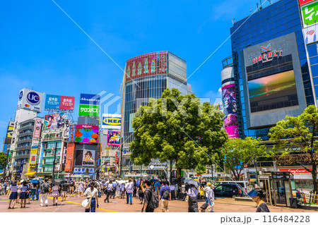 日本の東京都市景観 7月。渋谷駅前の(外国人観光客らで賑わう)渋谷センター街。希望の光…=5日