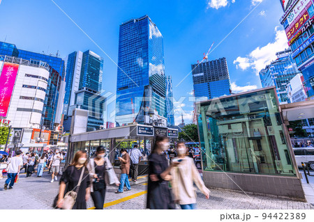 日本の東京都市景観 渋谷駅出入口・しぶちか。渋谷駅前はもはやコロナ禍前と変わらない人出=9月16日