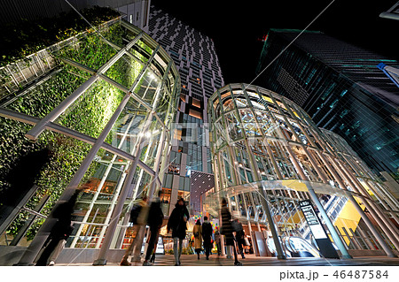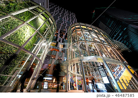 日本の東京都市景観 渋谷の新名所・明かりの灯った「渋谷ストリーム」(夜景)
