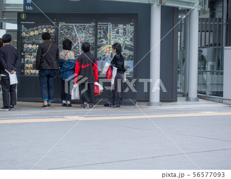 街頭の案内地図を眺める人々(渋谷駅交差点)