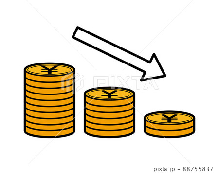 減少する積み重なった日本円のコインのイラスト