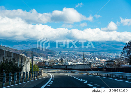 中央自動車道を走行中 岡谷ジャンクションのカーブ 諏訪のまち