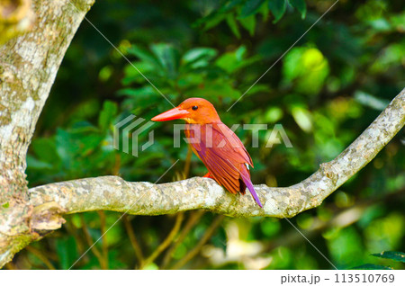 木の枝にとまるアカショウビン