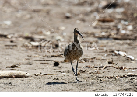 海岸を歩くホウロクシギ
