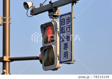 赤が点灯している歩行者用交通信号機④