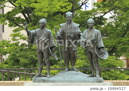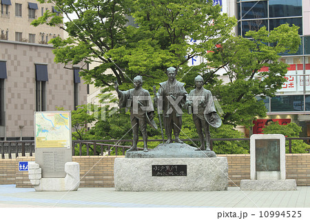 水戸黄門 助さん格さん像 :中央が黄門、左が助さん、右が格さん。水戸駅北口。