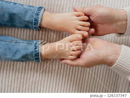 baby feet, boy feet, foot massage, dad tickles son's feet, foot tickling . High quality photo