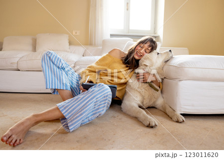 家族のポートレート 冬素材 リビングでおやつを食べる家族