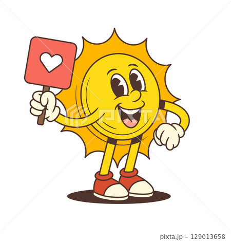 Happy Cartoon Sun Mascot Holding Red Heart Sign Friendly Gesture for Social Media Vector Illustration