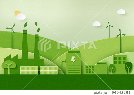 Green industry and alternative renewable energy.ESG as environmental social and governance concept.Paper art Vector illustration.