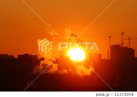 Climate change landscape, smoke, Pollution from urban expansion, environment. AI Generated.