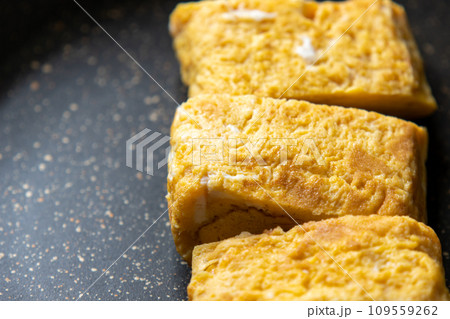 卵焼きをフライパンで温め直す。
