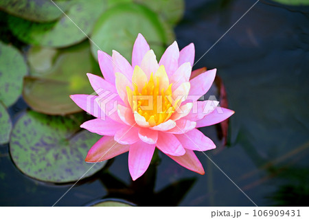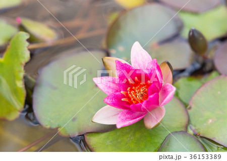睡蓮 池に浮かぶ睡蓮の花 一輪