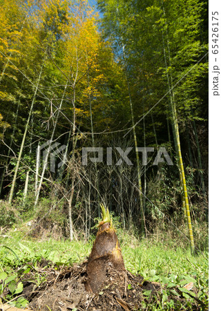 竹林をバックに出てきたタケノコ