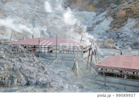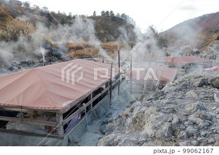 屋外にある岩盤浴場の小屋(玉川温泉 秋田県 仙北市)