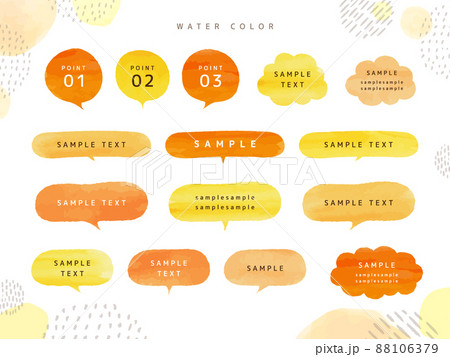水彩 シンプル 吹き出し フレーム セット water color かわいい オレンジ 黄色 ポカポ