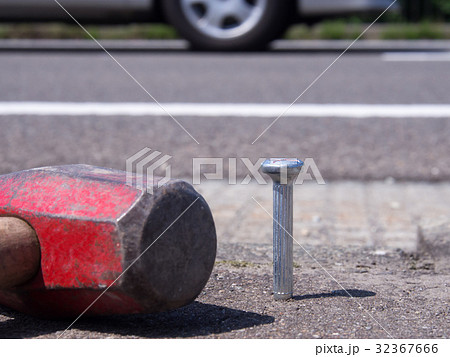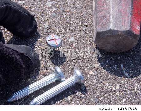 ハンマー 金属鋲 道路 自動車 測量のイメージ
