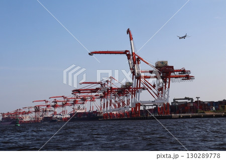 東京港のガントリークレーン 港湾作業 貨物船のコンテナの積み下ろし