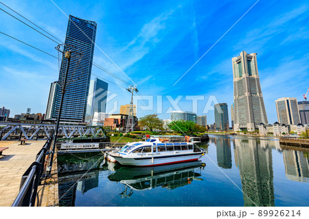 神奈川県 横浜市 運河パークからの都市風景 水上バスとみなとみらい
