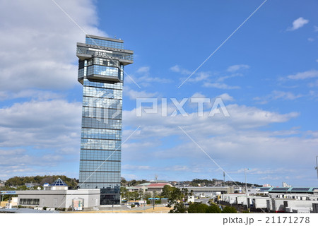 そびえ立つ大洗マリンタワー 夏の青空 茨城県東茨城郡大洗町港中央