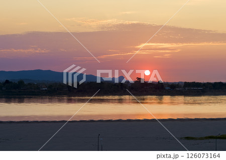 タイ・ナコンパノム メコン川越しに昇る朝日 / Nakhon Phanom, Thailand