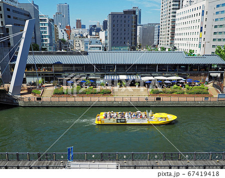 水都大阪 キャナルテラス堀江前の道頓堀川を行く観光船